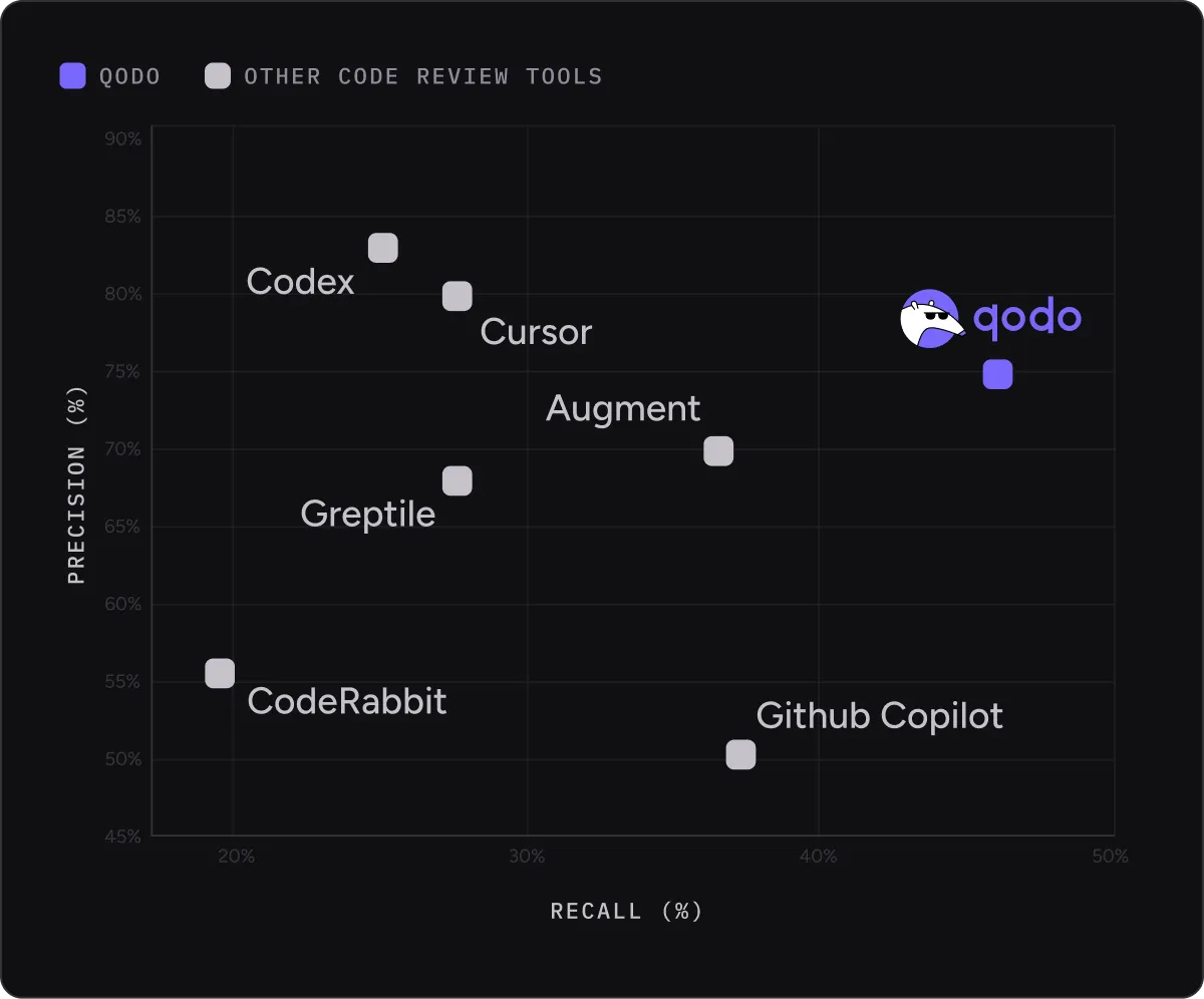 Qodo positions the product as a way for engineering teams to scrutinise AI-generated code for quality, compliance, and consistency before it reaches production. It also published benchmark results claiming an 11% improvement over other AI code review tools, with the highest precision and recall for identifying critical issues and rule violations.