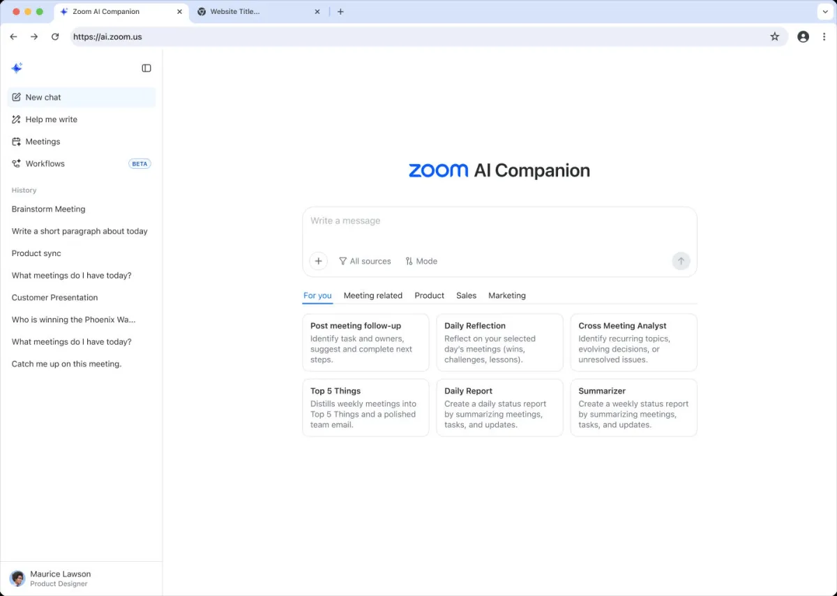 Zoom has positioned the interface as a conversational work surface. The system uses past discussions and stored materials to assemble summaries, track progress and draft content. Users do not need to upload meeting transcripts or write detailed prompts.